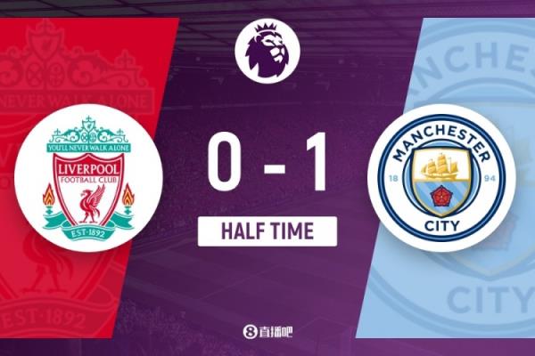 上半场补时2分钟。半场战罢,利物浦0-1曼城。