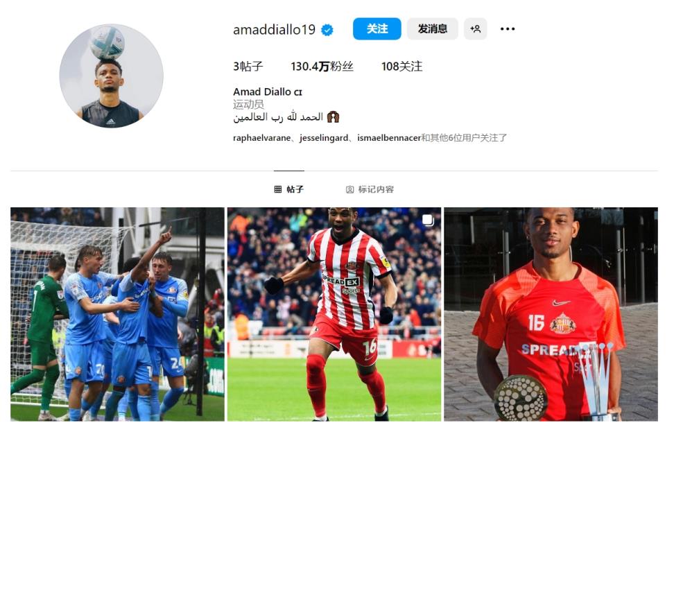 3月12日讯 21岁的右边锋阿玛德-迪亚洛删除了自己社交媒体上所有和曼联相关的内容,只剩下了3条外租桑德兰时更新的动态,目前暂不清楚其中的原因。