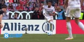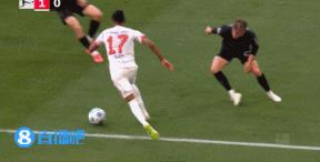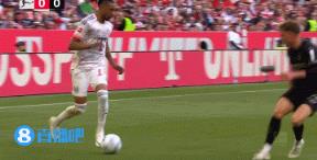 第31分钟,奥利塞右路个人能力内切,左脚射门!皮球线路上蹭到凯恩头皮变线!球进了!拜仁1-0领先门兴↓