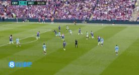 05月18日讯 曼城vs水晶宫第34分钟,B席禁区内被米切尔放倒,裁判判点,马尔穆什主罚打丢!