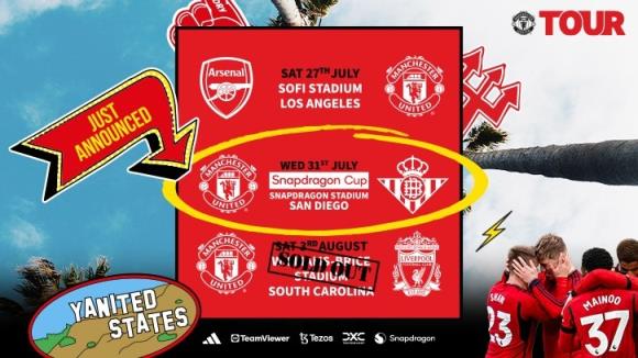 曼联官方表示,当地时间7月31日,曼联将在圣地亚哥的骁龙体育场和贝蒂斯进行一场热身赛。