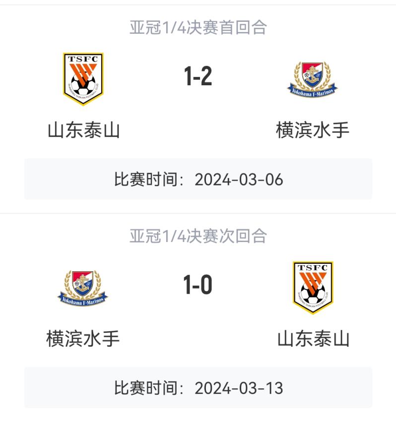 3月13日讯 亚冠8强战结束,山东泰山不敌横滨止步8强,结束了本赛季的亚冠征程。