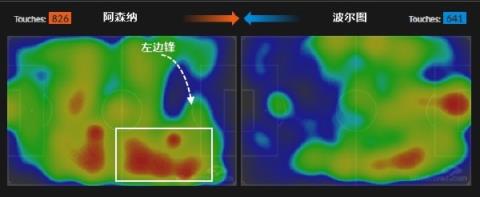 虽然说哈弗茨的中锋踢法,可以减轻萨卡的推进负担,不过阿森纳右路作为地面推进的主攻侧还是一目了然的(长传球拿第二落点,送左路的比例挺高,跟哈弗茨的移动习惯有关)。