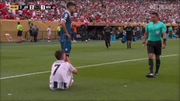 第22分钟,梅耶斯犯规放倒对手,吃到黄牌。↓