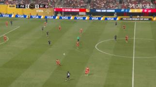07月06日讯 世俱杯1/4决赛,巴黎圣日耳曼vs拜仁慕尼黑,巴黎流畅反击,克瓦拉茨赫利亚小角度射门打在边网。