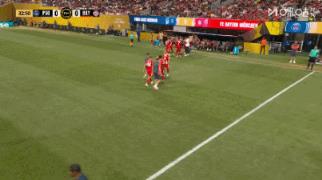 拜仁慕尼黑出场阵容:1-诺伊尔、2-于帕梅卡诺、4-塔、44-斯坦尼西奇、6-基米希、27-莱默尔、42-穆西亚拉、45-帕夫洛维奇、11-科曼、17-奥利塞、9-凯恩