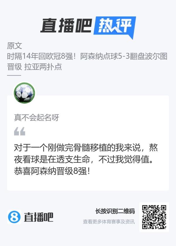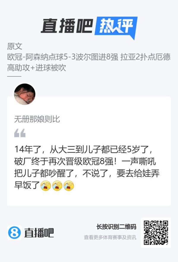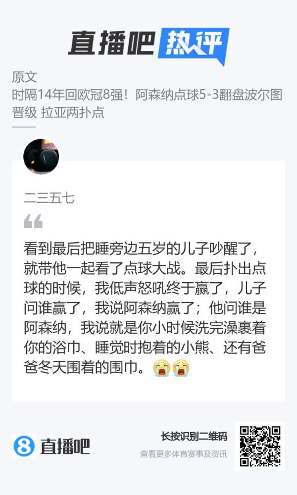 枪迷们怎能不泪流满面?时隔14年,阿森纳再进欧冠8强。