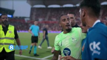 08月17日讯 新赛季西甲首轮,巴萨对阵马洛卡。半场补时阶段,拉菲尼亚飞铲染黄,引发马洛卡球员不满。回球员通道时,拉菲尼亚与马洛卡人员发生争吵。