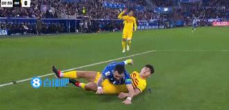 第36分钟,古里迪门前头球被佩尼亚扑出,孔德没有做出防守动作。↓