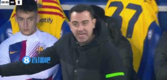 哈维在场边焦急指挥。↓