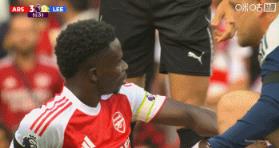 08月24日讯 阿森纳vs利兹联第53分钟,萨卡带球过程中大腿后侧拉伤被换下,特罗萨德替换上场。