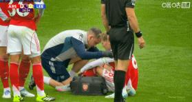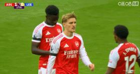 08月24日讯 英超第2轮阿森纳vs利兹联,第37分钟,厄德高此前被斯塔赫放倒,右肩不适最终还是无法坚持,18岁恩瓦内里将其换下!