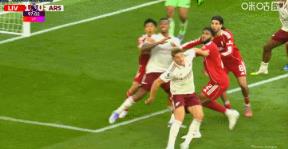 09月01日讯 利物浦vs阿森纳补时尾声,回放给到索博斯洛伊禁区内争顶时肩膀、胳膊部位触球,这下裁判没有表示。