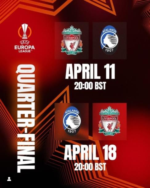 3月16日讯 利物浦官方消息,利物浦vs亚特兰大的欧联1/4决赛时间确定。