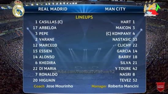 皇马3-2曼城首发