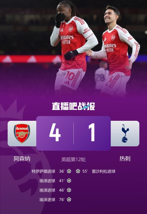 阿森纳vs热刺全场数据:射门17-3射正8-2,控球率57%-43%