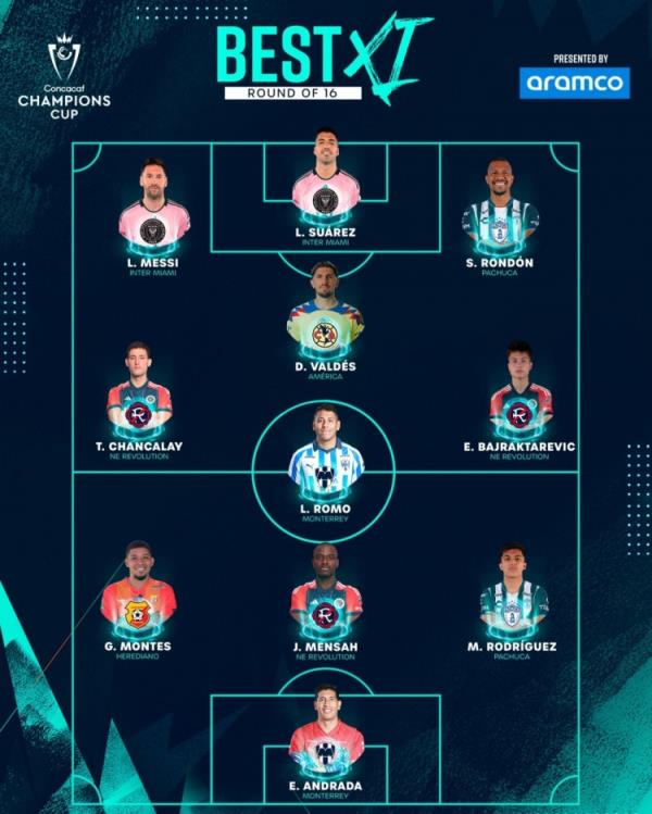 3月16日讯 中北美冠军杯官方列出了1/8决赛的最佳阵容,梅西、苏亚雷斯领衔。
