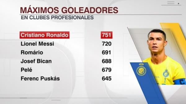 3月16日讯 在利雅得胜利客场对阵吉达国民的沙特联赛中,C罗点射破门,帮助利雅得胜利1-0取胜。据ESPN统计,C罗职业生涯至今在俱乐部打进751球,位居俱乐部历史射手榜首位。