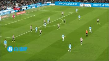 曼城的第一粒进球也是B席打门被纽卡球员挡进自家球门。