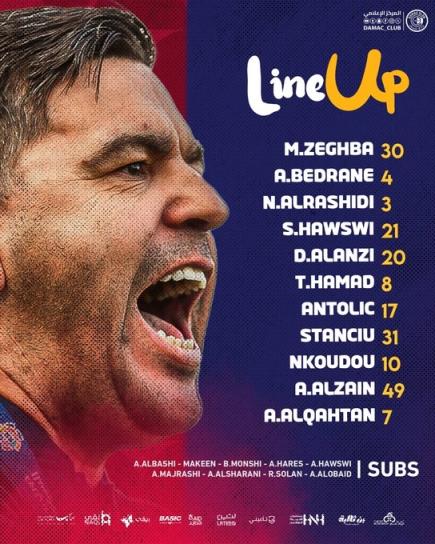 达马克首发:30-泽赫巴、4-贝德拉内、3-拉希迪、21-萨努西-豪萨维、20-阿纳齐、8-哈米德、17-安托利奇、31-斯坦丘、10-恩库杜、49-扎因、7-卡赫塔尼
