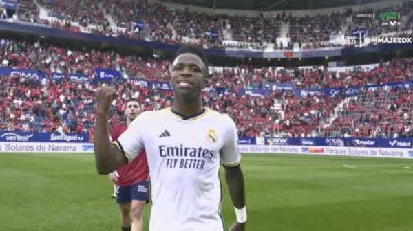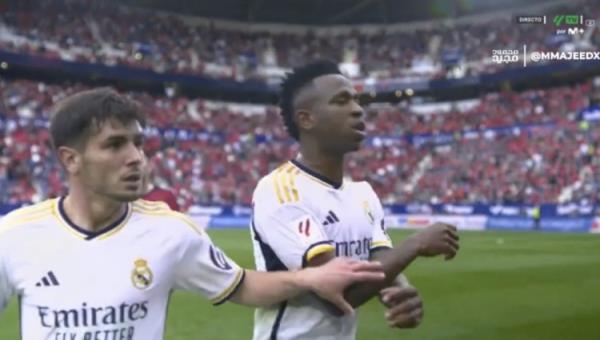 3月17日讯 皇马在西甲第29轮客场4-2击败奥萨苏纳,比赛中维尼修斯因被犯规后不满,抱怨裁判判罚被出示黄牌。