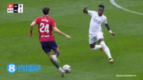3月17日讯 西甲第29轮,皇马半场2-1领先奥萨苏纳。上半场,维尼修斯抢断后单刀破门,错失单刀,染黄下轮停赛。