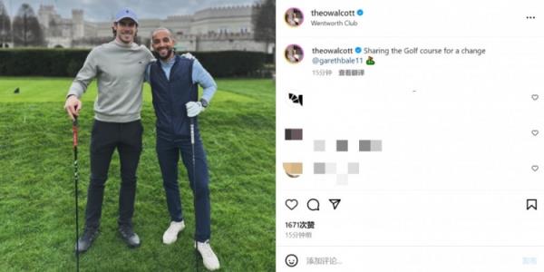 沃尔科特今天在社媒晒出一张和贝尔打高尔夫球的合照,众所周知,贝尔是一位高尔夫球爱好者,他曾参加高尔夫职业业余配对赛。