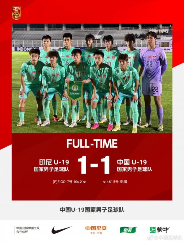 比赛第15分钟,中国队开出战术角球,陈泽仕传中,后点的彭啸力压防守队员头球破门,为中国队取得领先。比赛进入到伤停补时阶段,印尼队获得一粒点球,7号FIGO将球打进,终场前将比分扳平。