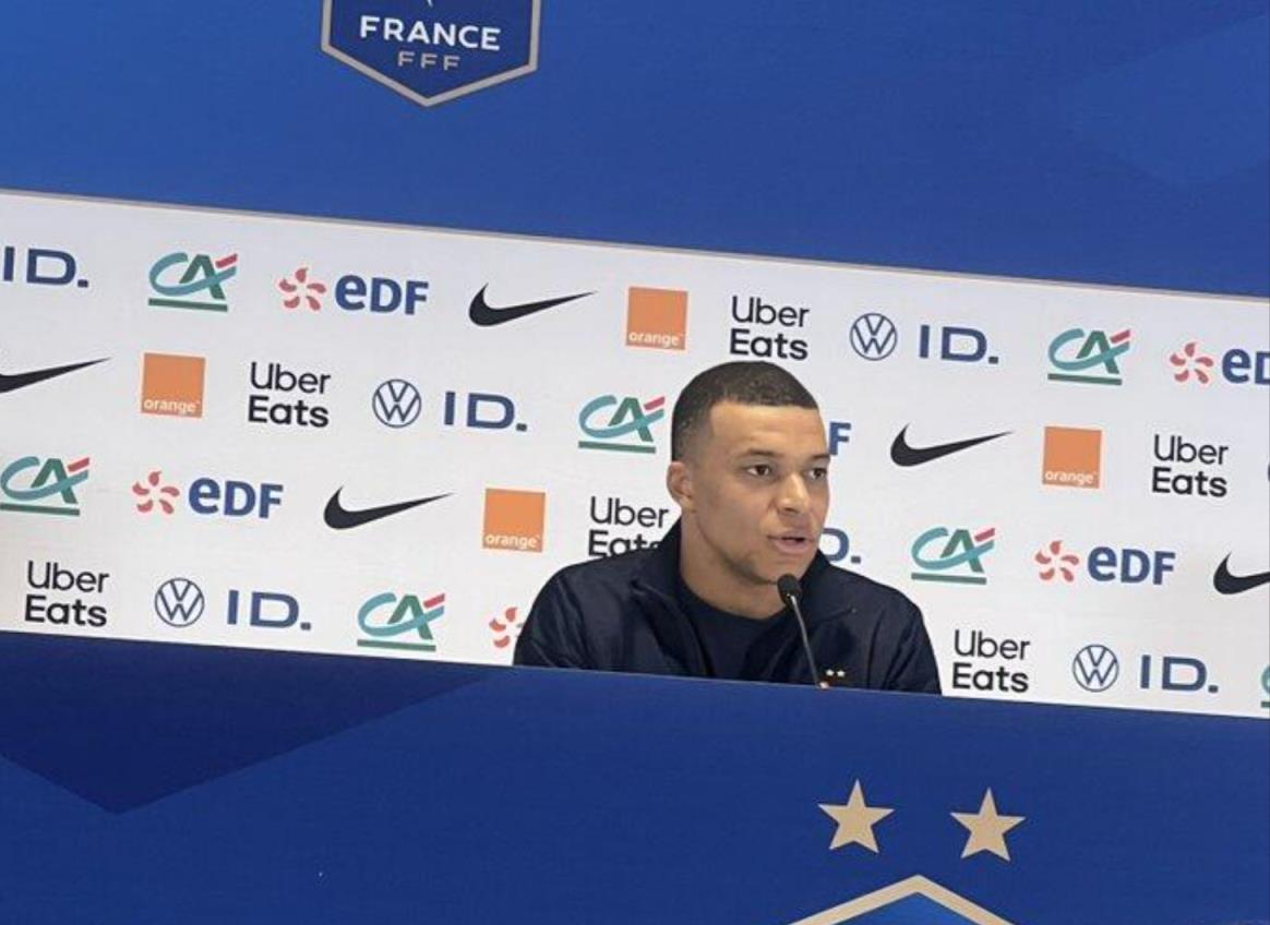 3月26日讯 法国队将在热身赛迎战智利,赛前,法国队队长姆巴佩出席新闻发布会。