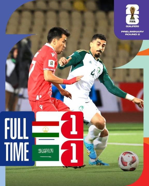 3月27日讯 世亚预在本轮再赛一场,亚洲杯黑马塔吉克斯坦主场1-1战平沙特。