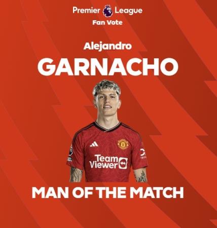 2月5日讯 英超联赛官方宣布,打入两球帮助曼联3-0战胜西汉姆的加纳乔,当选本场比赛最佳球员。