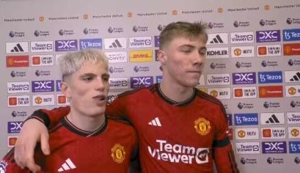 2月5日讯 英超第23轮,曼联主场3-0完胜西汉姆。赛后,两位进球功臣霍伊伦和加纳乔一起接受了天空体育的采访。