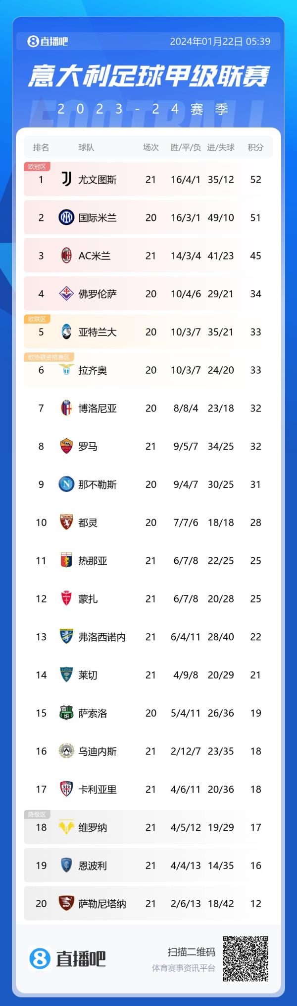 4月3日讯 意甲豪门尤文最近9轮比赛战绩出现断崖式下跌,这让他们的欧冠席位受到了相当大的威胁,《都灵体育报》盘点了意甲球队近9轮比赛拿分情况,尤文仅仅位居第17位。