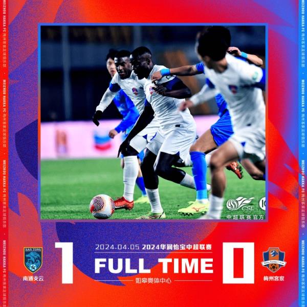 4月5日20:00,2024华润怡宝中国足球协会超级联赛第4轮比赛,梅州客家做客如皋奥体中心,对阵南通支云。