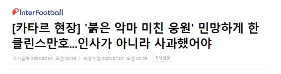 而克林斯曼的行为遭到了韩媒的批评,韩国媒体naver发文表示,克林斯曼应该道歉,而不是致意。