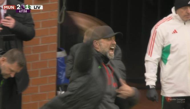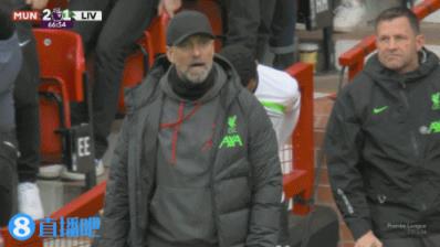 4月8日讯 曼联vs利物浦,曼联上半场遭围攻,但在下半场第67分钟时已经连入两球反超,克洛普暴怒。