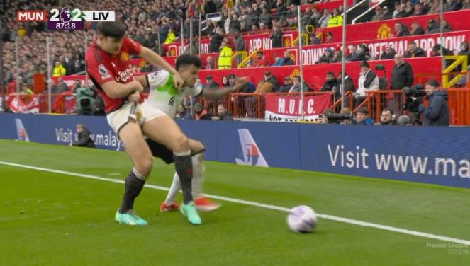 04月08日讯 利物浦vs曼联第88分钟,马奎尔底线死防迪亚斯,两人谁也不让谁!