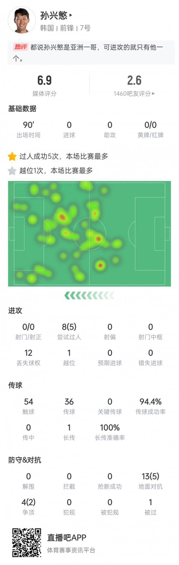 2月7日讯 亚洲杯半决赛,约旦队2-0淘汰夺冠热门韩国队。孙兴慜打满全场但发挥不佳,甚至无一射门。