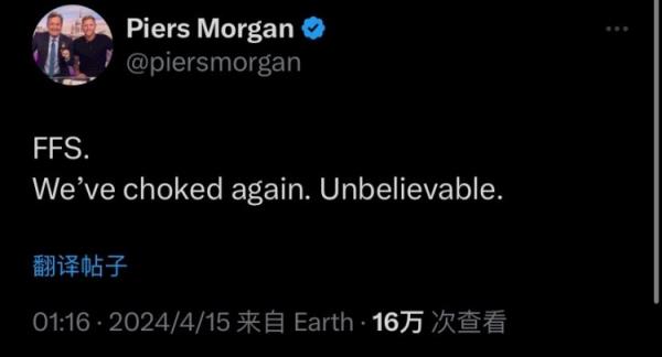 对此,知名枪迷、英国名嘴皮尔斯-摩根也忍不住爆粗吐槽:他*的。我们又掉链子了,真是难以置信。