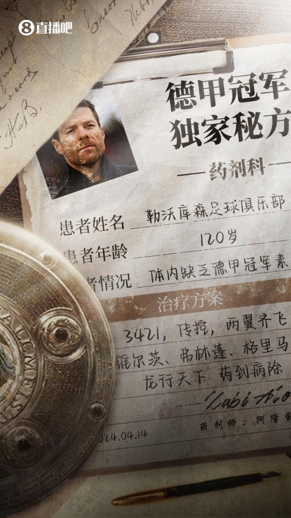 4月15日讯 德甲第29轮,勒沃库森5-0击败不来梅,提前5轮获得23/24赛季德甲冠军!