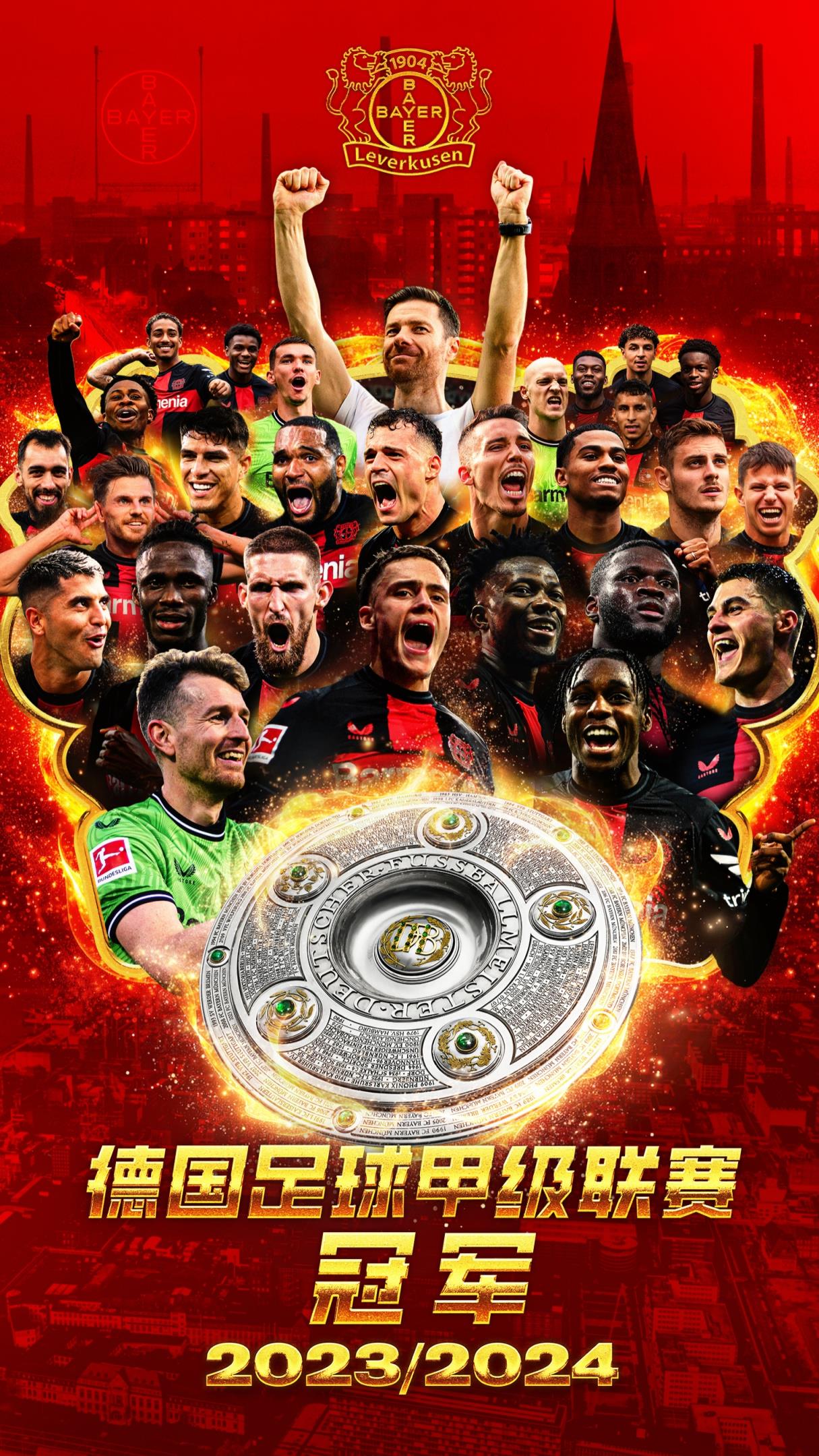 这也是勒沃库森建队120年来首次获得德甲冠军。勒沃库森此前分别在96/97、98/99、99/00、01/02以及10/11赛季获得联赛亚军,如今球队终于如愿拿下冠军锦标。