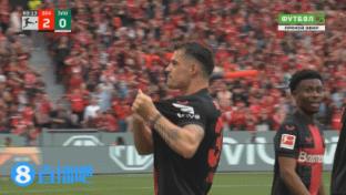 4月15日讯 德甲第29轮,勒沃库森对阵不莱梅第60分钟,扎卡世界波!勒沃库森再进一球,2-0领先不莱梅。