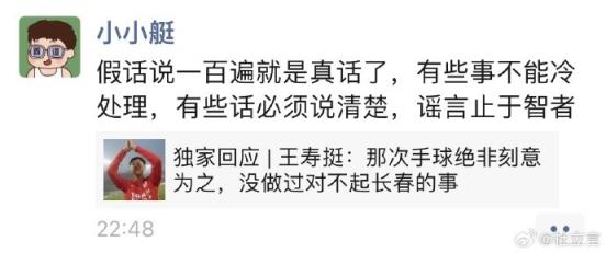 对此,王寿挺在接受《足球报》采访时做出了回应,另外他还在个人朋友圈写道:“假话说一百遍就是真话了,有些事不能冷处理,有些话必须说清楚,谣言止于智者。”