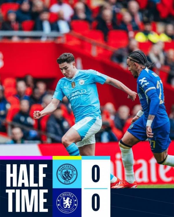 4月21日讯 足总杯半决赛曼城vs切尔西,上半场,杰克逊单刀球过门将不射门,双方目前战成0-0。