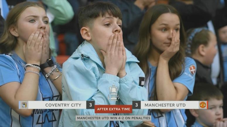 太可惜!考文垂点球大战不敌曼联,考文垂球迷遗憾同时依然高歌