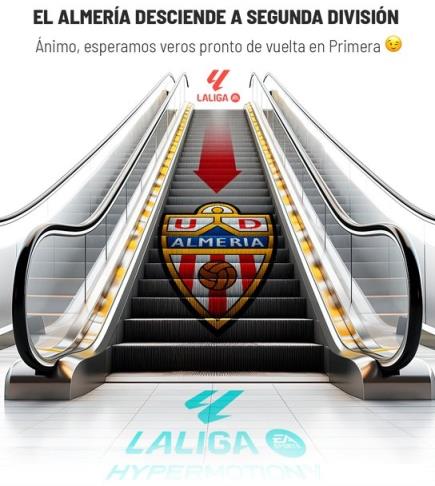 目前,阿尔梅里亚1胜11平21负积14分,积分榜垫底提前5轮降入西乙。