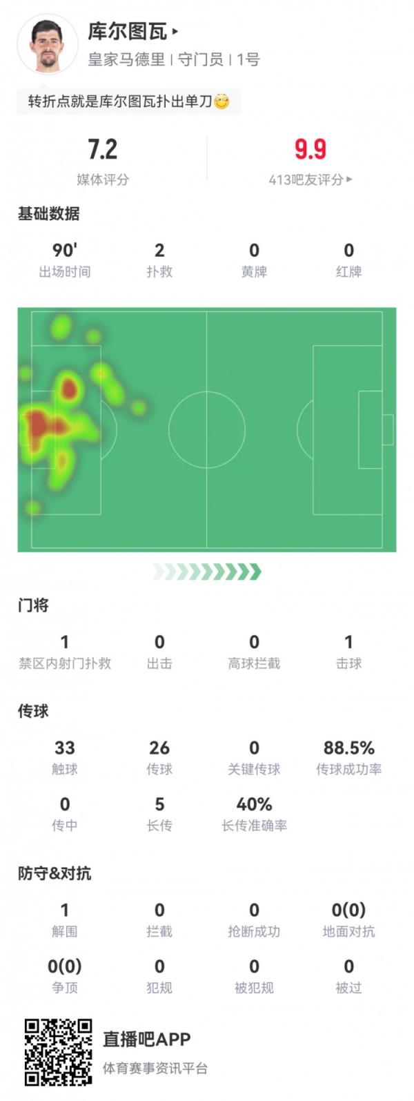 5月5日讯 本轮西甲,皇马主场3-0加的斯。此役库尔图瓦复出上演赛季首秀,球员全场重点数据如下↓