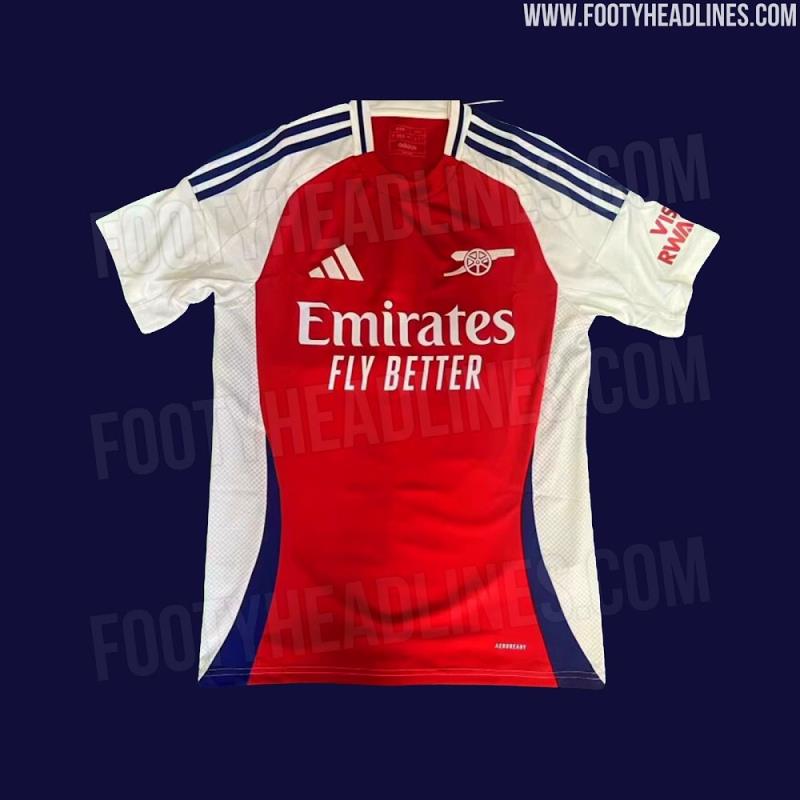 5月5日讯 足球装备网站Footy Headlines披露了阿森纳24/25赛季主场球衣的谍照,在传统的红白配色基础上,罕见地添加了蓝色元素。