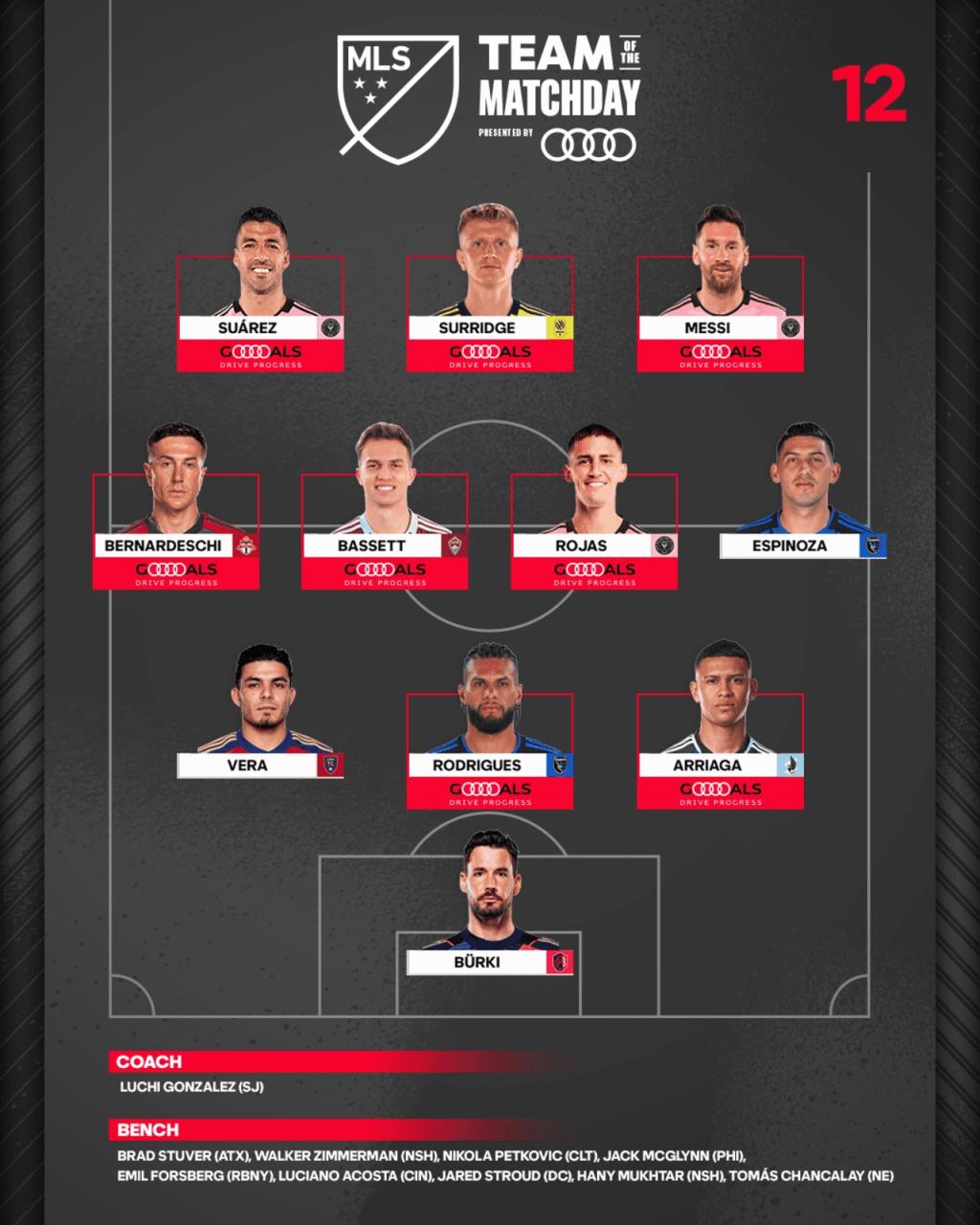 中场:贝纳德斯基(多伦多FC)、巴塞特(科罗拉多急流)、罗哈斯(迈阿密国际)、埃斯皮诺萨(圣何塞)