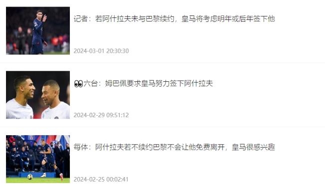 据媒体此前报道,阿什拉夫存在回归皇马的可能性。TA皇马跟队记者Mario Cortegana透露,如果阿什拉夫未与巴黎续约,皇马将考虑在2025年或2026年签下他。